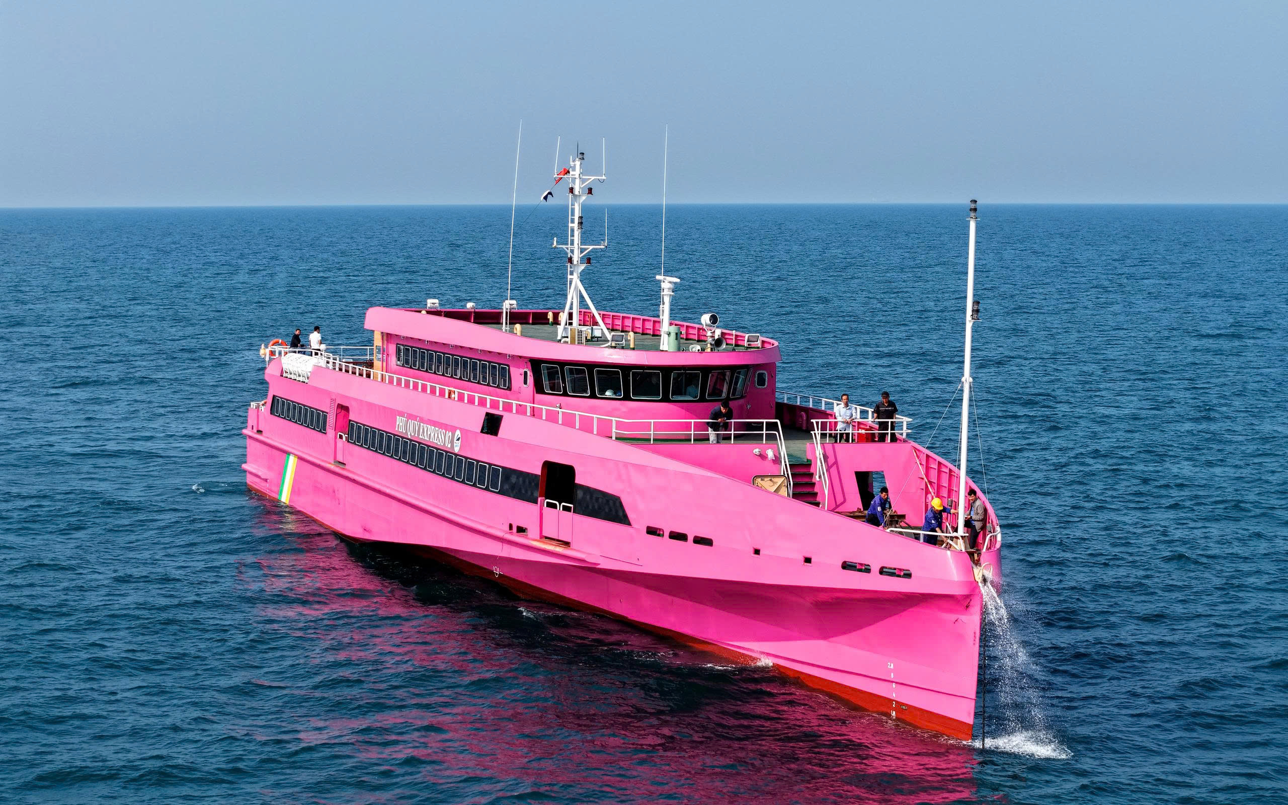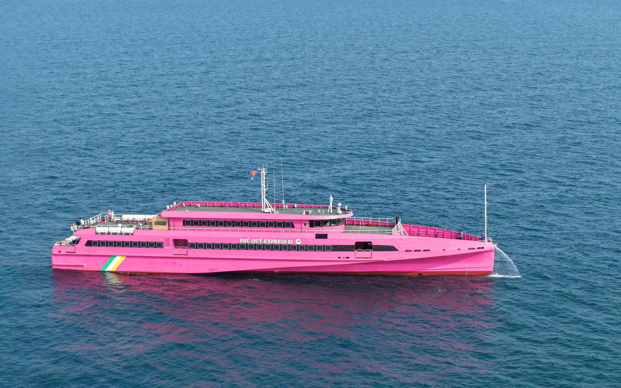 Cộng đồng đam mê xê dịch vừa được một phen “đứng ngồi không yên” khi những hình ảnh thực tế đầu tiên của tàu Phú Quý Express 02 chính thức được hé lộ. Không chỉ gây ấn tượng bởi kích thước đồ sộ, con tàu còn chiếm trọn spotlight với sắc hồng nổi bật rực rỡ giữa biển khơi.